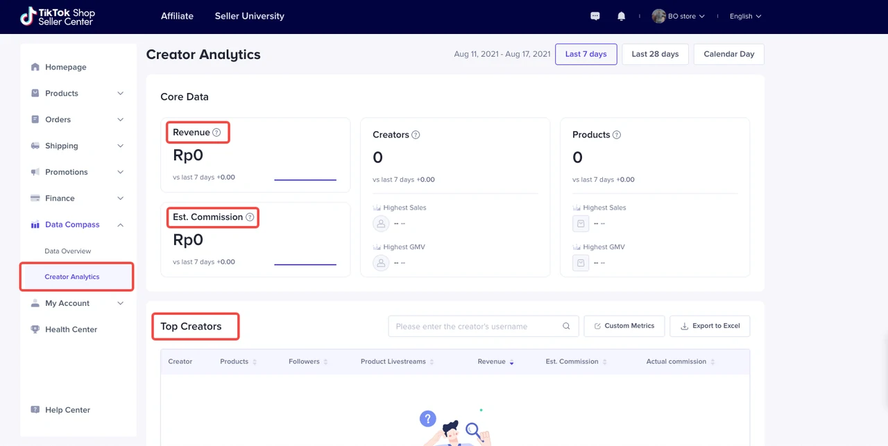 - 如果您想从创作者的角度查看您的产品和计划表现,请前往“Seller center(卖家中心)”,在“Data Compass(数据指南)”中查看“Creator Analytics(创作者分析)”。您将能够看到: